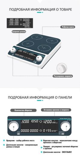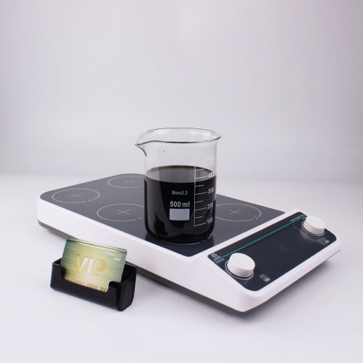 Антикоррозийная пластина из ПЭТ: Материал поверхности мешалки - антикоррозионная пластина из ПЭТ. Это обеспечивает долговечность и прочность оборудования, особенно при работе с агрессивными или реактивными растворами. Не все магнитные мешалки, представленные на рынке, обладают такой функцией, что делает ее заметным преимуществом.