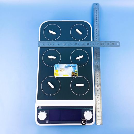 6-ти местная магнитная мешалка без нагрева c ЖК-дисплеем 5Drops-MMS-6PRO на 500 мл - это современная 6-позиционная магнитная мешалка, предназначенная для эффективного и точного перемешивания нескольких растворов одновременно. Благодаря расширенным возможностям и прочной конструкции она идеально подходит для использования в лабораториях, исследовательских центрах и учебных заведениях. Многопозиционность, точность и удобство использования делают ее ценным дополнением к любой лаборатории или учебному заведению. Независимо от того, проводите ли вы сложные исследования или обучаете студентов, эта магнитная мешалка обязательно оправдает и превзойдет ваши ожидания.