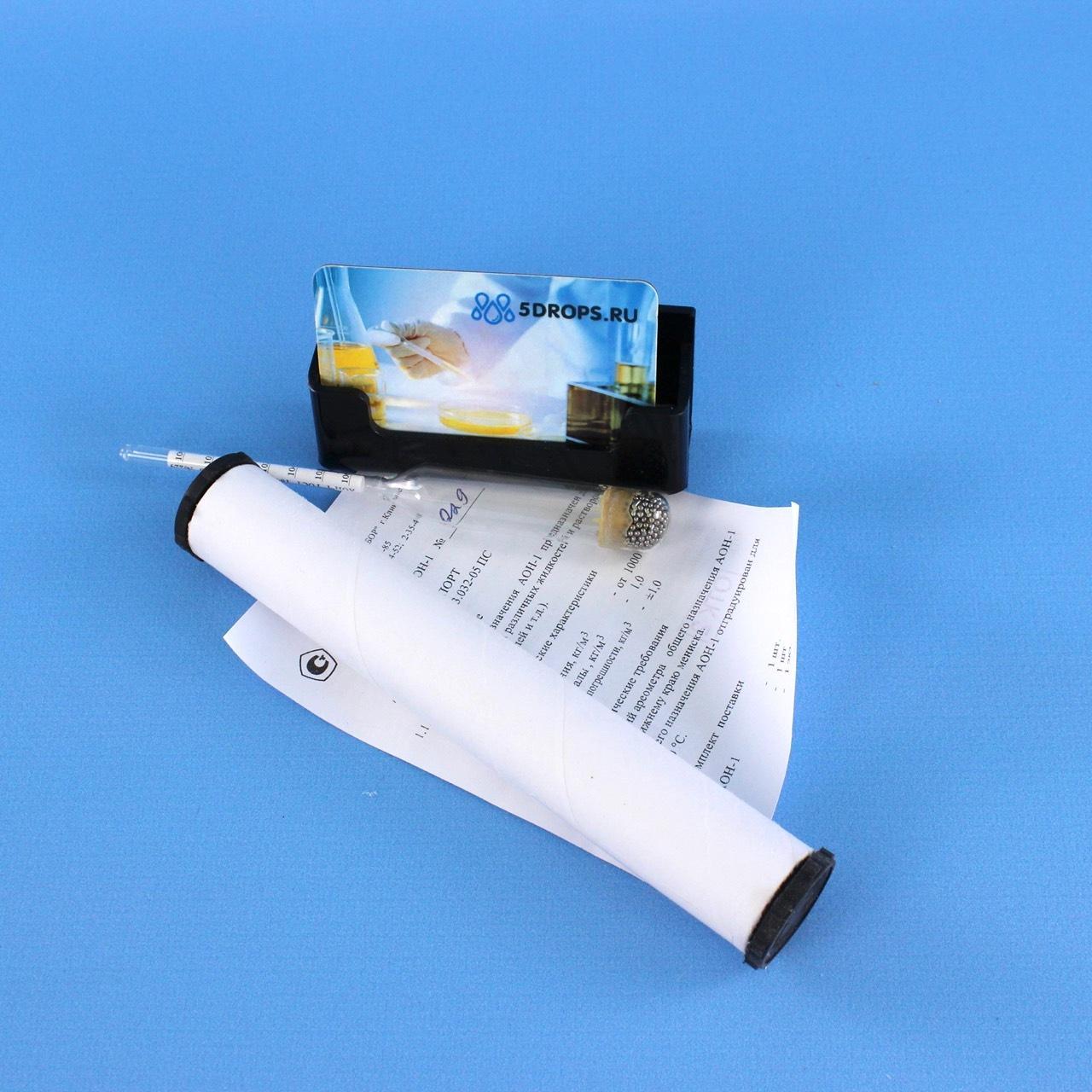 Ареометр общего назначения АОН-1 (1000...1060 кг/м³), (ГОСТ 18481-81). универсальный лабораторный ареометр, рассчитанный на быстрый контроль плотности практически любых жидкостей: от лёгких органических растворителей до насыщенных солевых растворов и технических масел. Данный вид ареометров закрывает 95 % типовых задач производства, НИОКР и учебных лабораторий, позволяя оперативно вносить коррективы в технологические процессы и подтверждать качество готовой продукции.