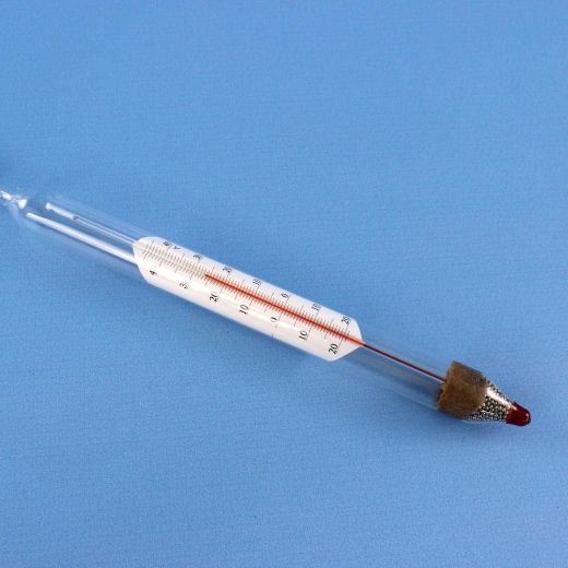 Ареометр АНТ-1 позволяет проводить измерения как летом, так и зимой. Шкала термометра рассчитана на измерение температуры в диапазоне от -20°C до +45°C. Цена деления шкалы термометра – 1°C.