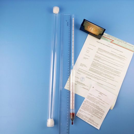 Ареометр для нефти и нефтепродуктов АНТ-1 - это специализированный прибор, предназначенный для измерения плотности нефтепродуктов в диапазоне температур от -20°C до +45°C. В него встроен термометр для измерения температуры исследуемой жидкости.