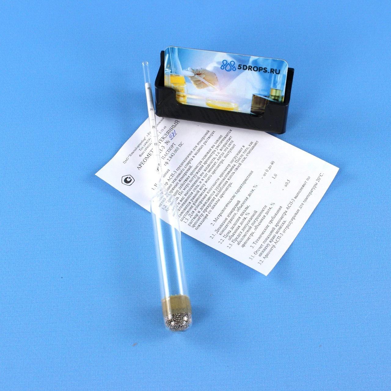 Ареометр для спирта АСП-3 (0...40%), (ГОСТ 18481-81). разработан для точного определения объёмной концентрации этилового спирта (Alc/Vol) в водных растворах. Ареометр применяется при технологическом контроле дистилляции, купажирования и разбавления спирта, позволяя оперативно корректировать крепость продукта и соблюсти требования рецептуры.