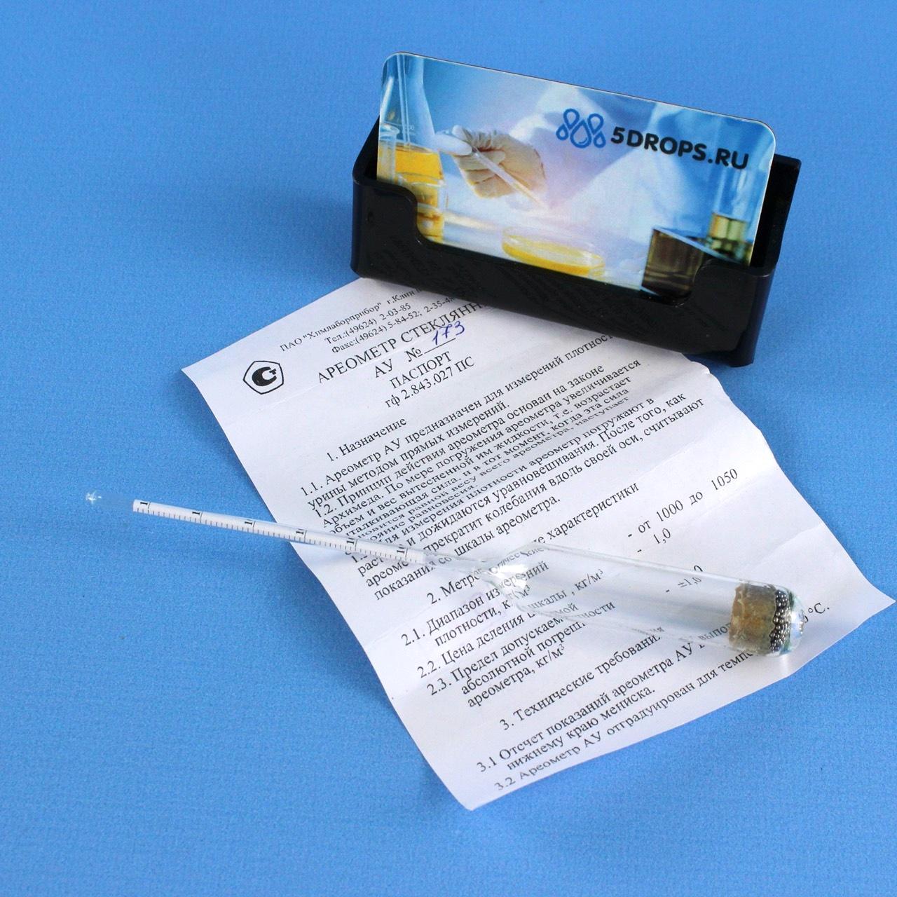 Диапазон измерения плотности: 1000...1050 кг/м³Цена деления шкалы: 1 кг/м³