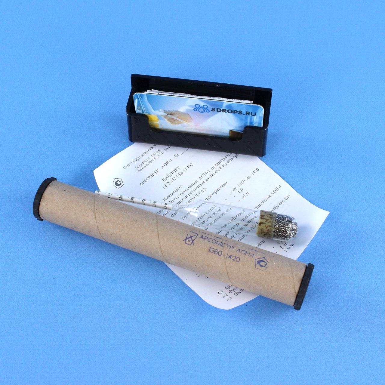 Ареометр общего назначения АОН-1 (1360...1420 кг/м³), (ГОСТ 18481-81). универсальный лабораторный ареометр, рассчитанный на быстрый контроль плотности практически любых жидкостей: от лёгких органических растворителей до насыщенных солевых растворов и технических масел. Данный вид ареометров закрывает 95 % типовых задач производства, НИОКР и учебных лабораторий, позволяя оперативно вносить коррективы в технологические процессы и подтверждать качество готовой продукции.