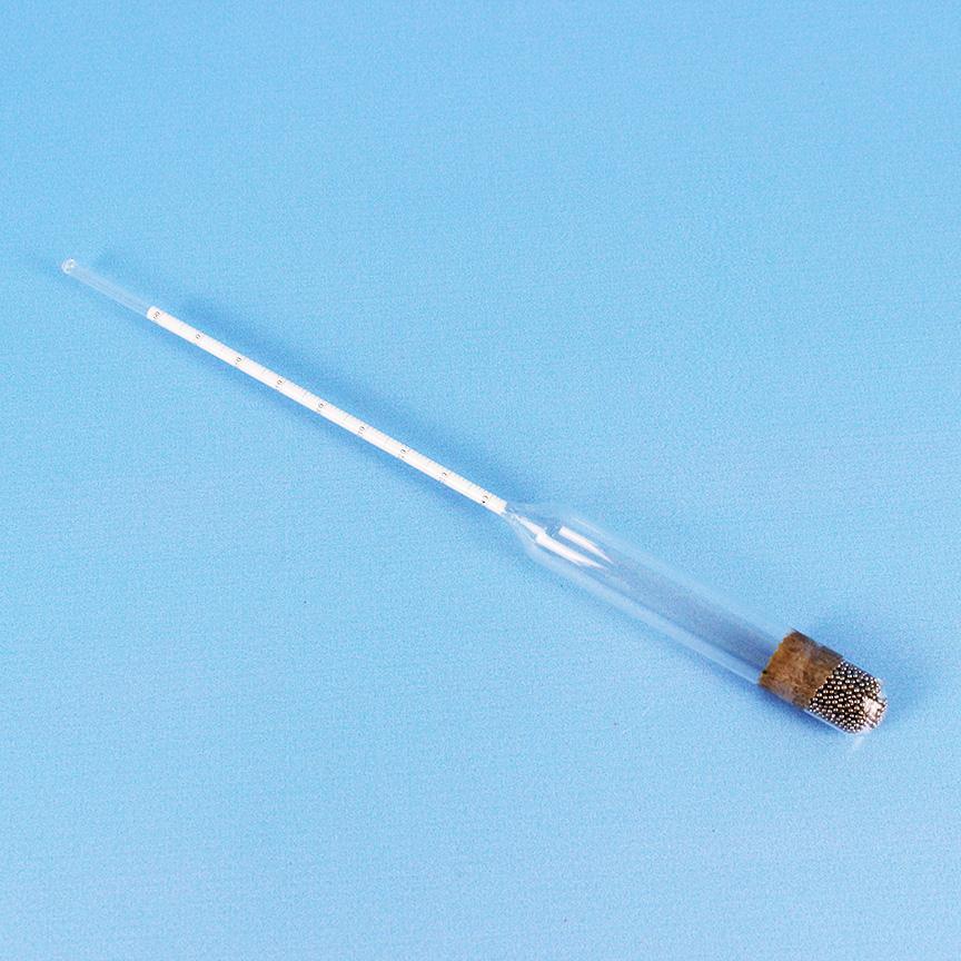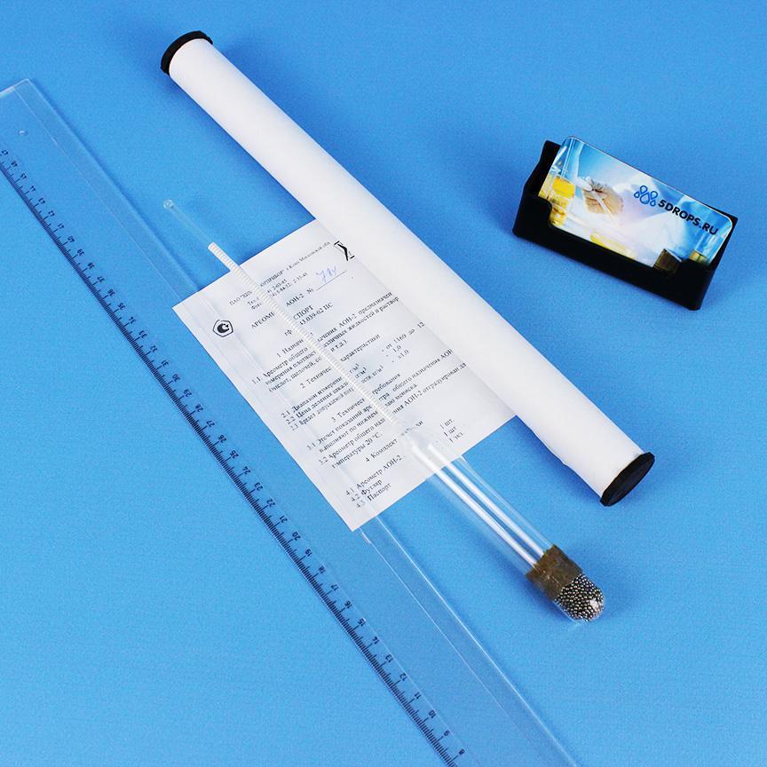 Ареометр общего назначения АОН-2 (1160...1240 кг/м³), (ГОСТ 18481-81). универсальный лабораторный ареометр, рассчитанный на быстрый контроль плотности практически любых жидкостей: от лёгких органических растворителей до насыщенных солевых растворов и технических масел. Данный вид ареометров закрывает 95 % типовых задач производства, НИОКР и учебных лабораторий, позволяя оперативно вносить коррективы в технологические процессы и подтверждать качество готовой продукции.