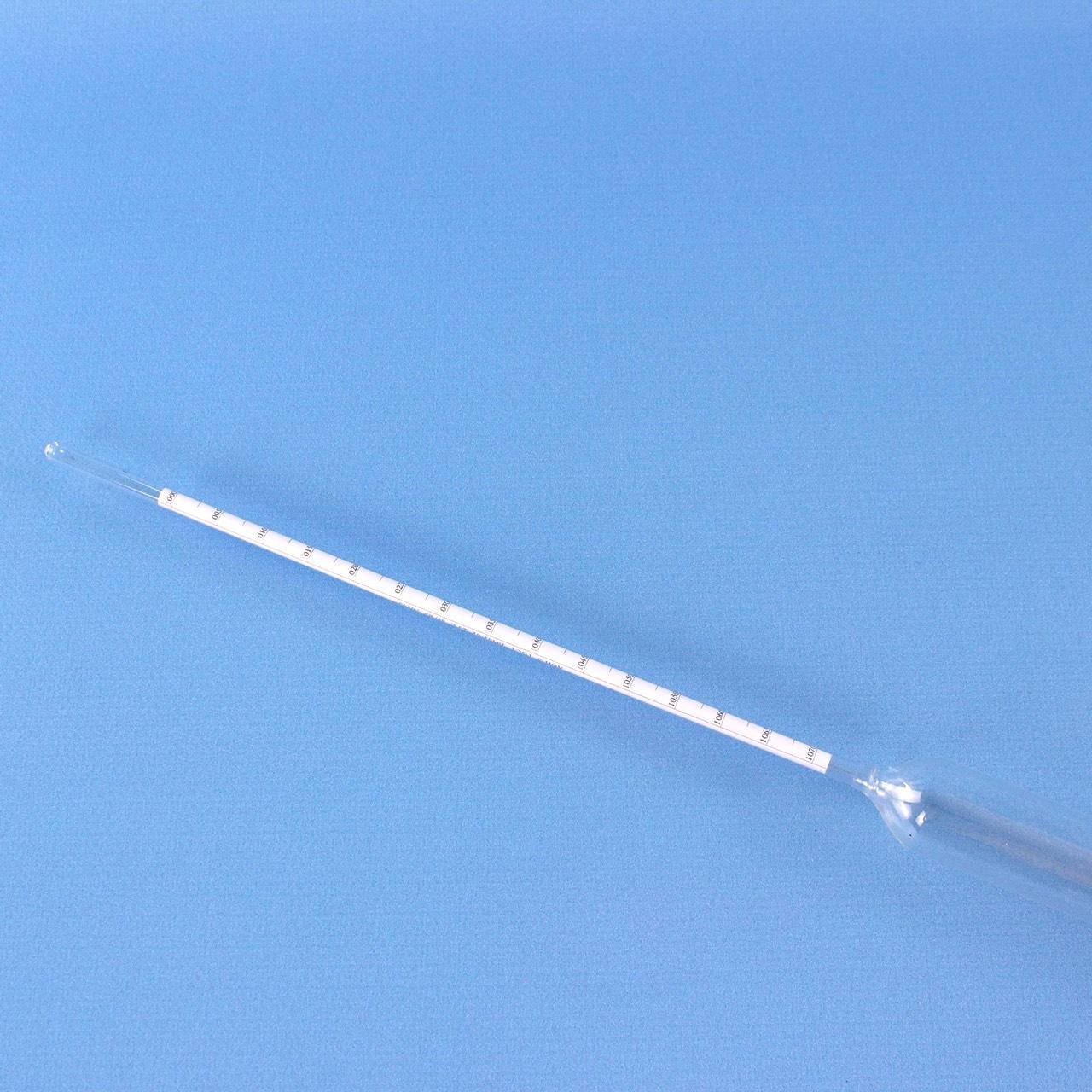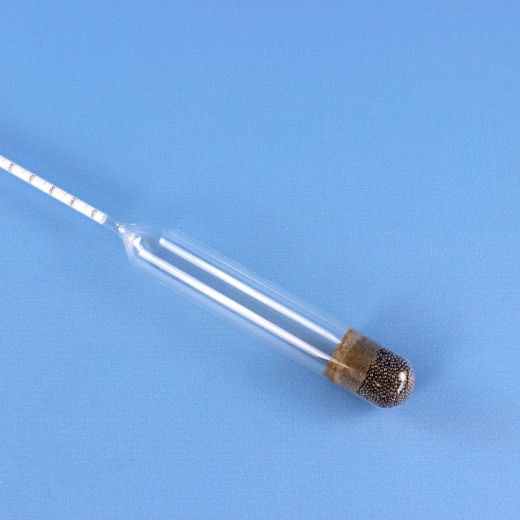 Ареометр общего назначения АОН-5 (1000...1070 кг/м³), (ГОСТ 18481-81). универсальный лабораторный ареометр, рассчитанный на быстрый контроль плотности практически любых жидкостей: от лёгких органических растворителей до насыщенных солевых растворов и технических масел. Данный вид ареометров закрывает 95 % типовых задач производства, НИОКР и учебных лабораторий, позволяя оперативно вносить коррективы в технологические процессы и подтверждать качество готовой продукции.