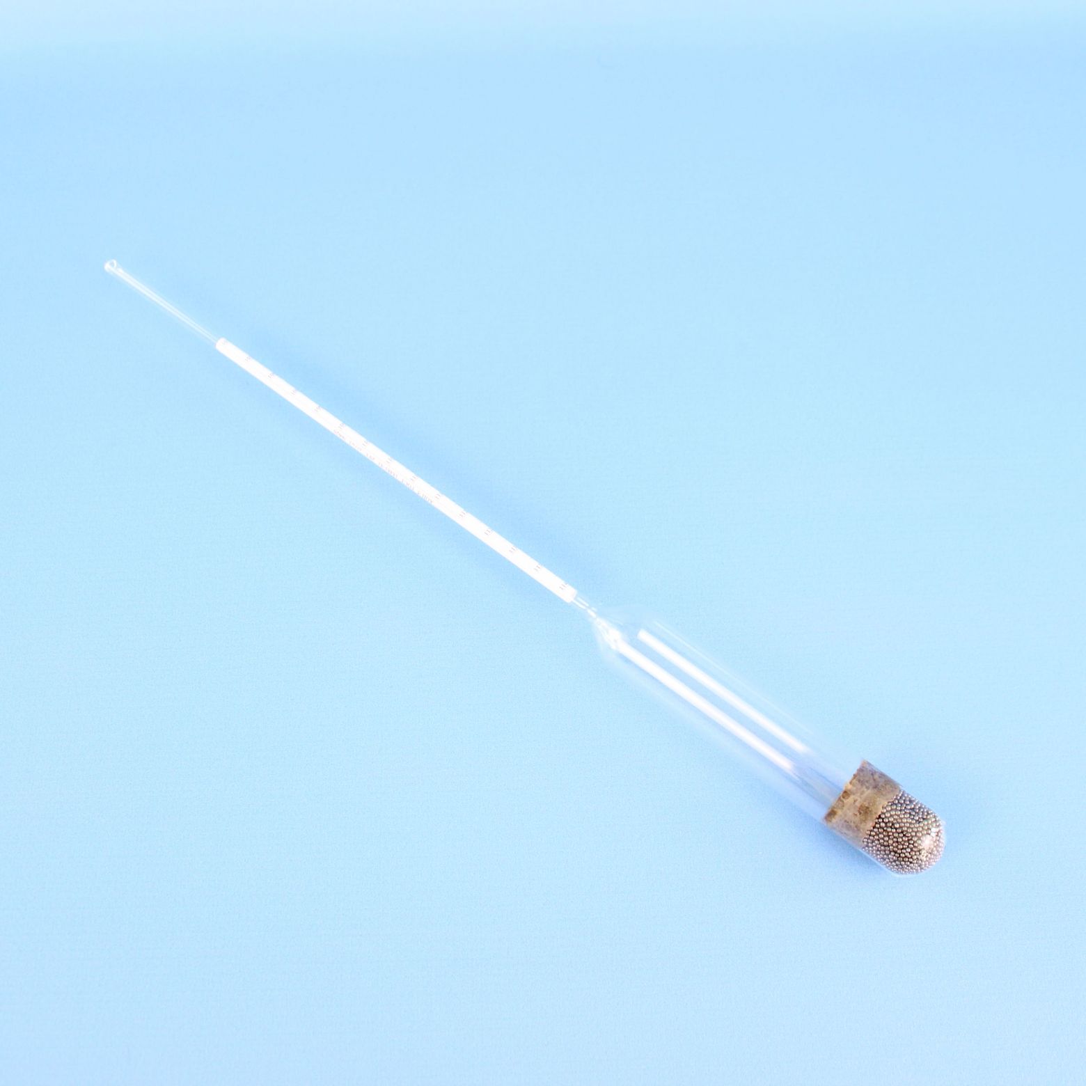 Ареометр общего назначения АОН-5 (1070...1140 кг/м³), (ГОСТ 18481-81). универсальный лабораторный ареометр, рассчитанный на быстрый контроль плотности практически любых жидкостей: от лёгких органических растворителей до насыщенных солевых растворов и технических масел. Данный вид ареометров закрывает 95 % типовых задач производства, НИОКР и учебных лабораторий, позволяя оперативно вносить коррективы в технологические процессы и подтверждать качество готовой продукции.