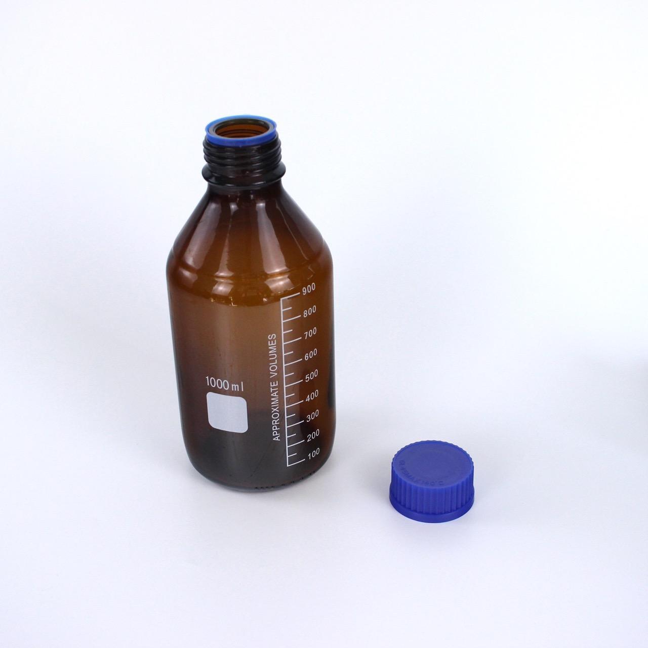 Бутыль 1000 мл с винтовой крышкой из качественного двойного лабораторного тёмного стекла. Отличается термостойкостью и химической стойкостью. Коэффициент температурного расширения применяемого стекла НС-1 почти в 10 раз ниже, чем у обычного, что позволяет стеклу не трескаться при резких изменениях температуры. Помимо этого "янтарное" стекло обеспечивает практически 100% защиту от ультрафиолетового излучения. Представленная ёмкость выгодно отличается от прочих химических бутылей надёжной и практичной винтовой крышкой с пластиковой прокладкой, что обеспечивает полную герметичность, а также удобство при открытии и закупорке банки.
