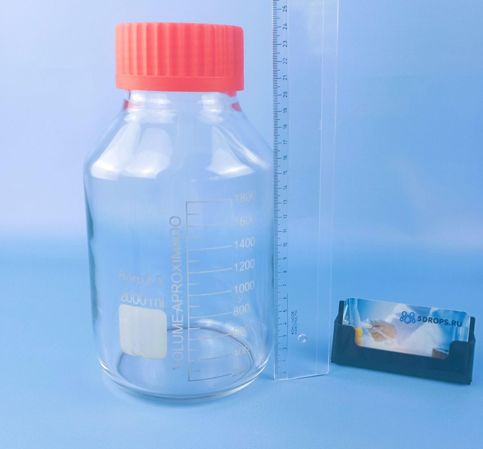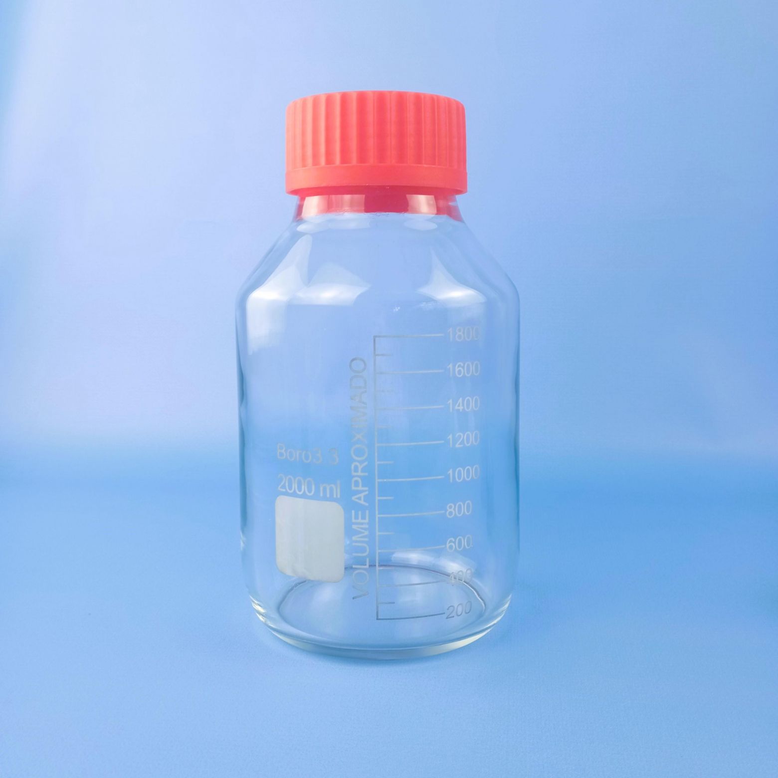 Банка для реактивов 2000 мл, стекло Boro 3.3, светлое стекло, широкое горло GL80, с винтовой крышкой, градуированная. изготовлена из боросиликатного стекла, Boro 3.3, известного своей высокой термической и химической стойкостью. Широкое горло GL80 облегчает наполнение, дозирование и очистку бутылки. Крышки с кольцевой прокладкой изготовленные из полипропилена способны выдерживать автоклавирование при температуре в 140°C, что позволяет стерилизовать их и повторно использовать в лабораторных и медицинских условиях.