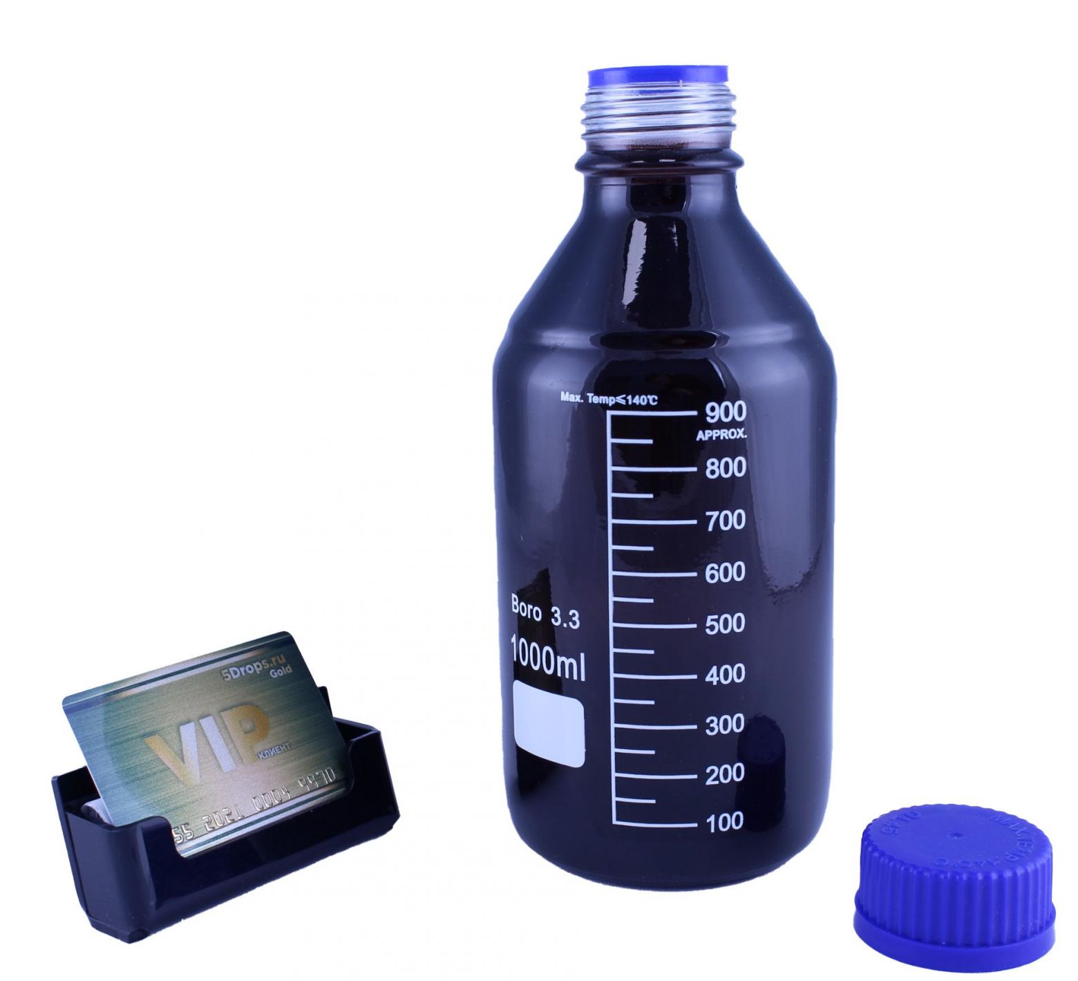 Банка для реактивов 5drops GL45, 1000 мл, стекло Boro 3.3, темное стекло, с винтовой крышкой, градуированная