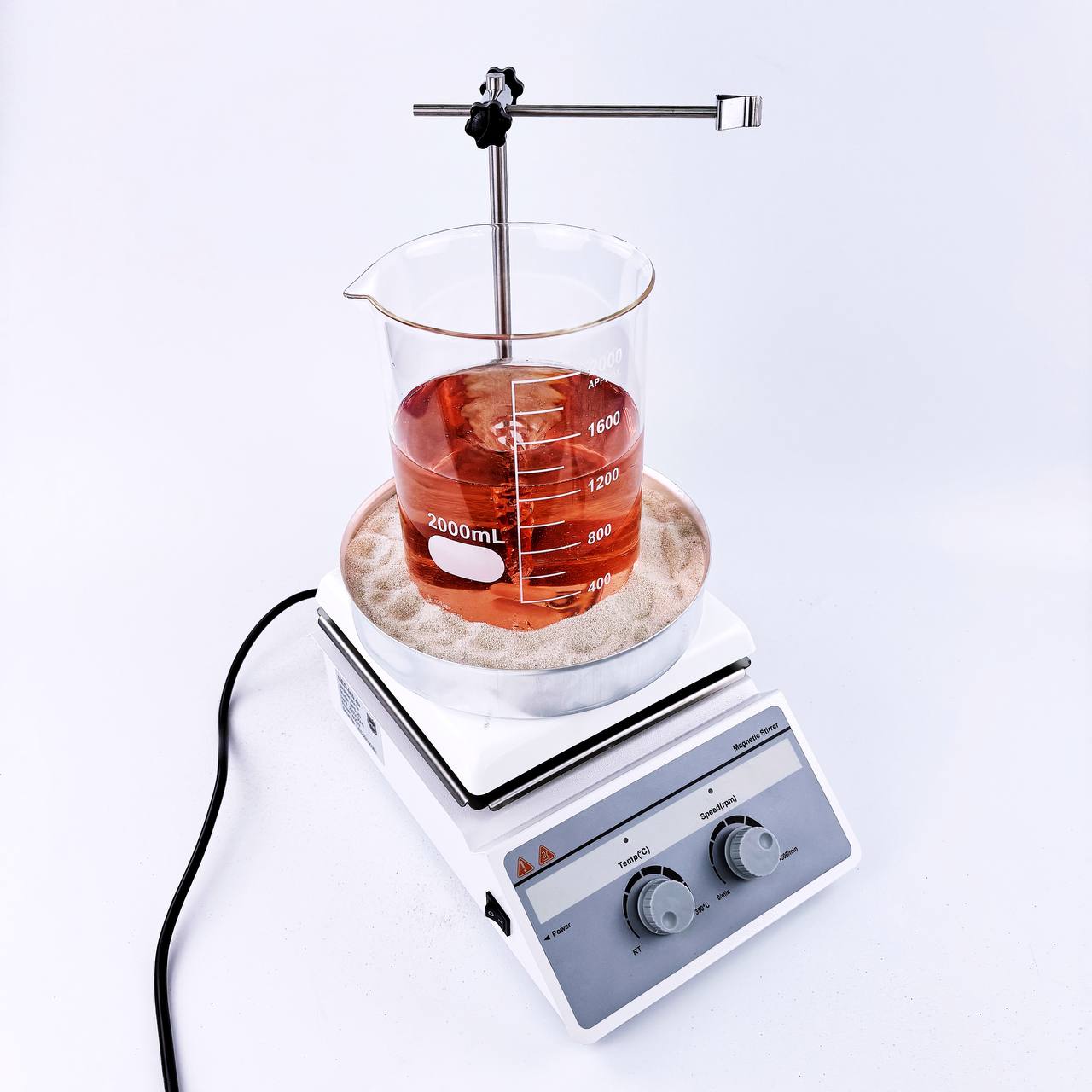 В отличие от классической песочной бани, модель с магнитной мешалкой обладает расширенной функциональностью: она не только равномерно нагревает содержимое сосуда, но и одновременно обеспечивает его непрерывное перемешивание. Это особенно важно при проведении реакций, требующих однородности среды, при растворении твёрдых веществ, работе с многокомпонентными смесями или при нагреве нестабильных растворов. Интеграция мешалки повышает точность контроля процесса, исключает температурную стратификацию и сводит к минимуму необходимость ручного вмешательства — что делает такую баню оптимальным решением для динамичных, длительных и чувствительных лабораторных операций.