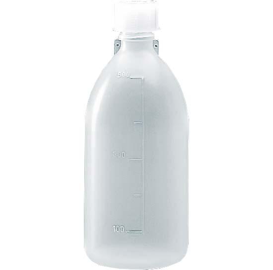 Бутылки узкогорлые, градуированные Kartell 500 мл  - снабжена вкладышем, обеспечивающим герметичность, и специальными петельками, которые можно использовать для пломбировки или крепления информационных табличек. Устойчива к действию щелочей любых концентраций, органических кислот, концентрированных соляной и плавиковой кислот; разрушается азотной кислотой, хлором и фтором. Изготовлена из полиэтилена. Автоклавированию не подлежит.