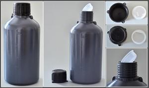 Бутылки узкогорлые, градуированные Aptaca 500 мл цвет серый - снабжена вкладышем, обеспечивающим герметичность, и специальными петельками, которые используются для пломбировки или крепления информационных табличек. Бутылка устойчива к действию щелочей любых концентраций, органических кислот, концентрированных соляной и плавиковой кислот; разрушается азотной кислотой, хлором и фтором. Изготовлена из полиэтилена. Автоклавированию не подлежит.