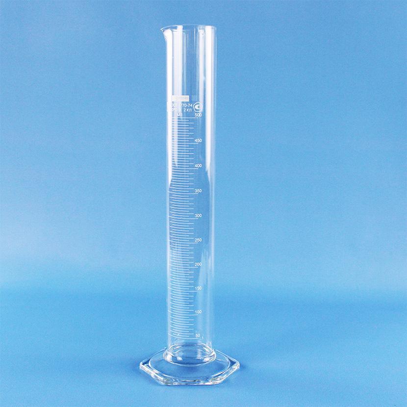 Цилиндр мерный 1-500-2, 500 мл, со стеклянным основанием, с носиком, белая шкала, (ГОСТ 1770-74)