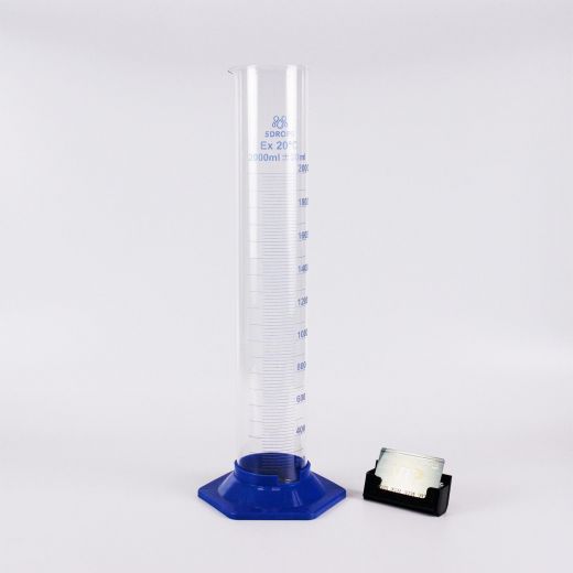 Цилиндр оснащен градуированной шкалой, обеспечивающей точность измерений, а удобный носик позволяет аккуратно переливать жидкости, предотвращая их разлив. Широкое пластиковое основание гарантирует устойчивость и снижает риск опрокидывания, что особенно важно при работе с объемными растворами.