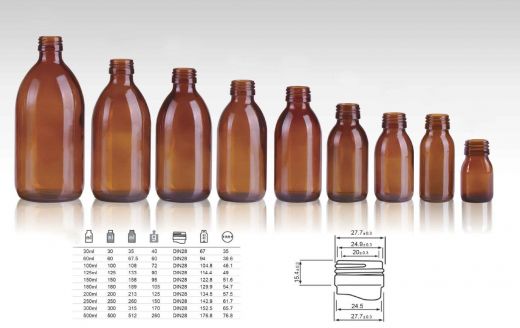 Флакон для сиропа 100 мл, темное стекло, винт., горло G28, 140 шт/упак