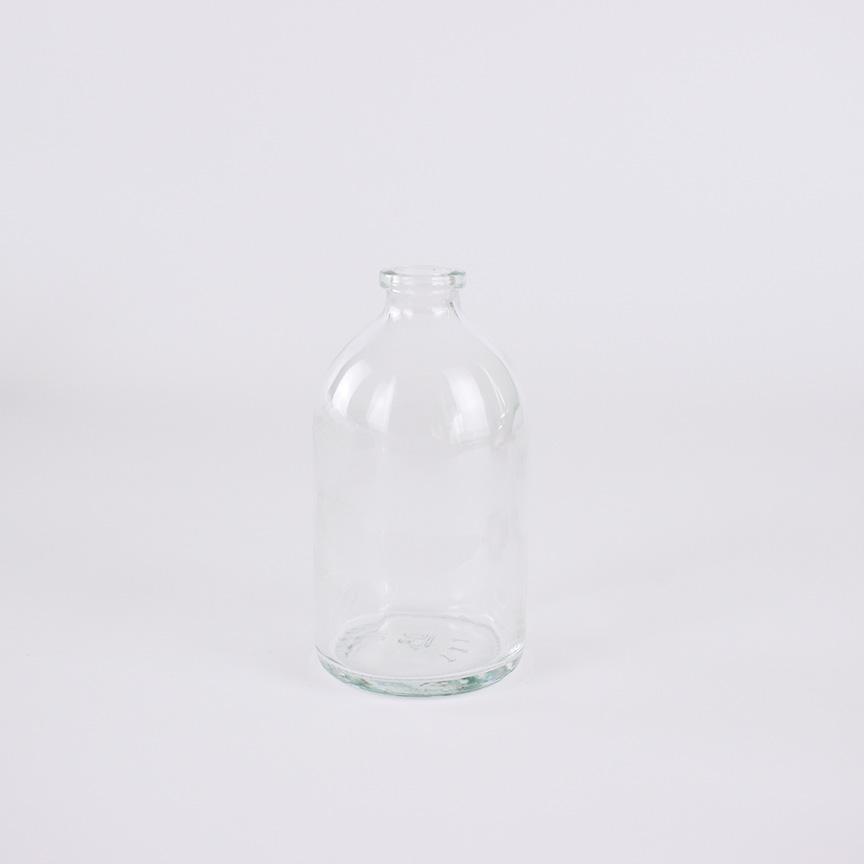 Флакон 100 мл инъекционный, светлое стекло, круглый скат горла, 88 шт/упак, G20, гладкое горло, без пробки, AT