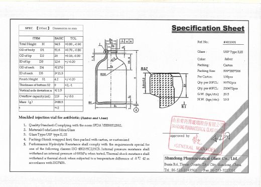 Соответствует ГОСТ 34036-2016 "Упаковка стеклянная из стекломассы для лекарственных средств",