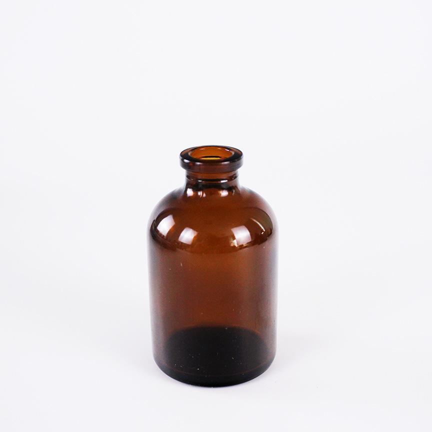 Флакон 50 мл инъекционный, ТЁМНОЕ ЛИТОЕ СТЕКЛО С ГЛАДКИМ ГОРЛОМ (Упаковка 81 шт). Без пробки.