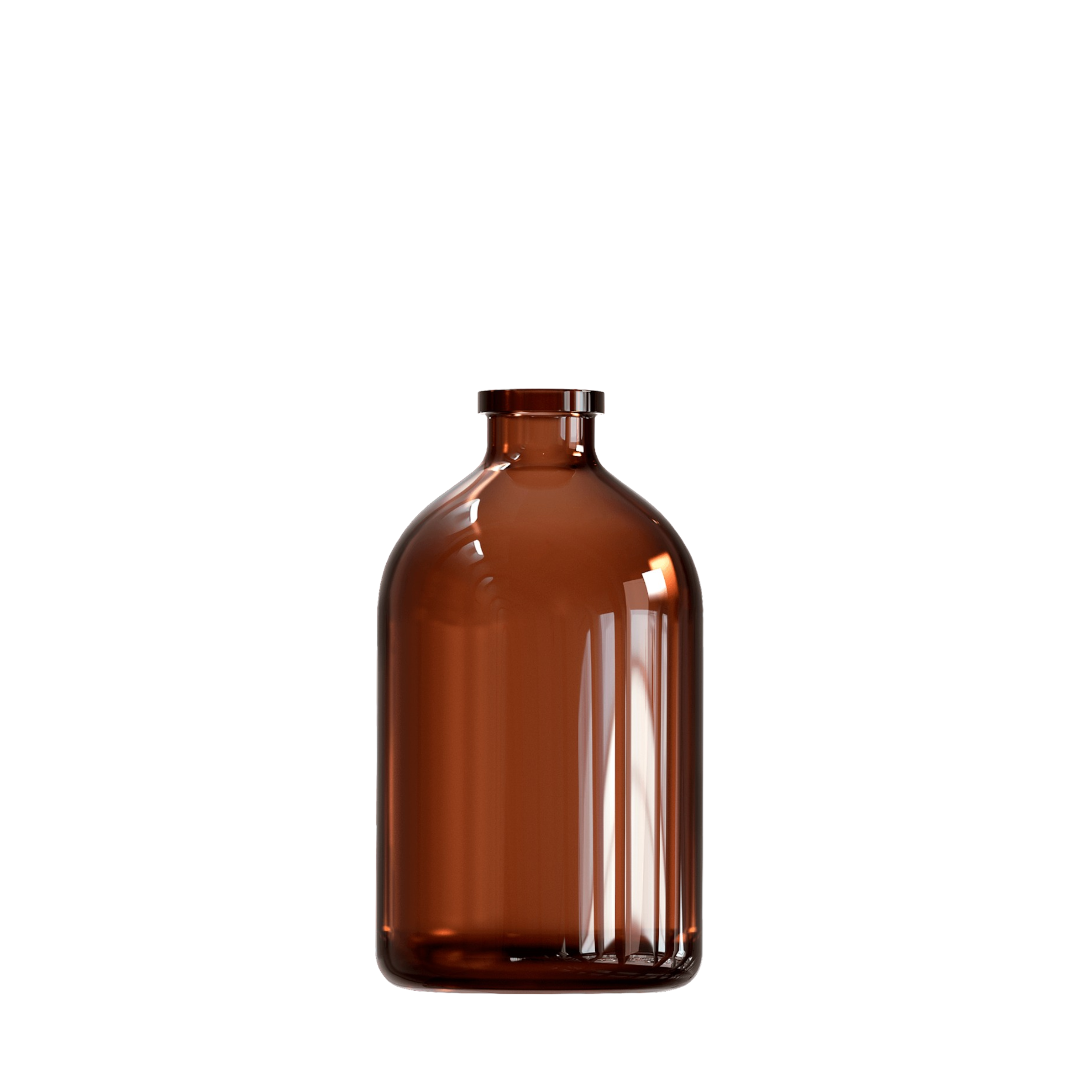 Флакон 50 мл инъекционный, тёмное литое стекло, 81 шт/упак, G20, гладкое горло, без пробки