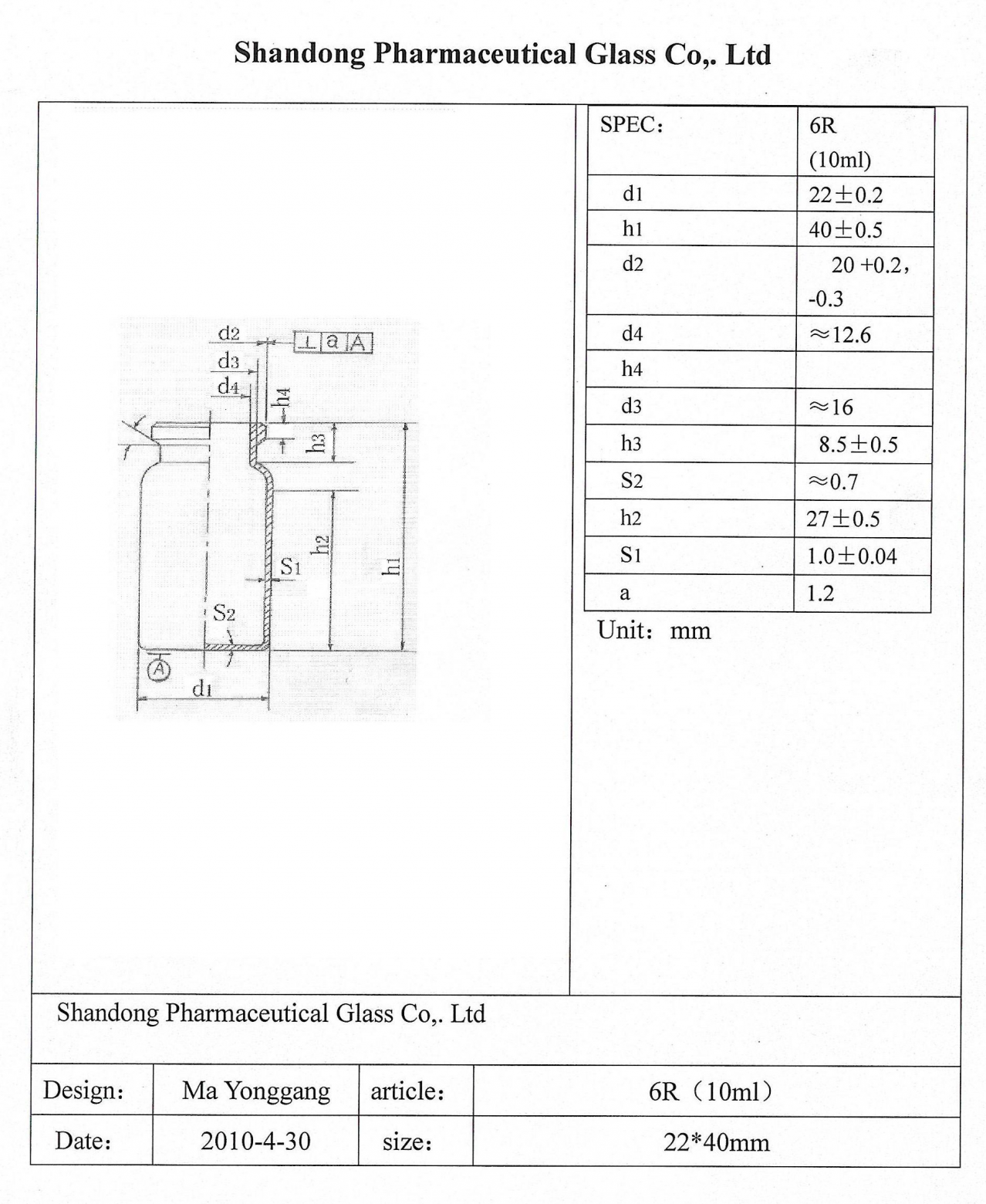 Диаметр дна: 22 ±0,2 мм