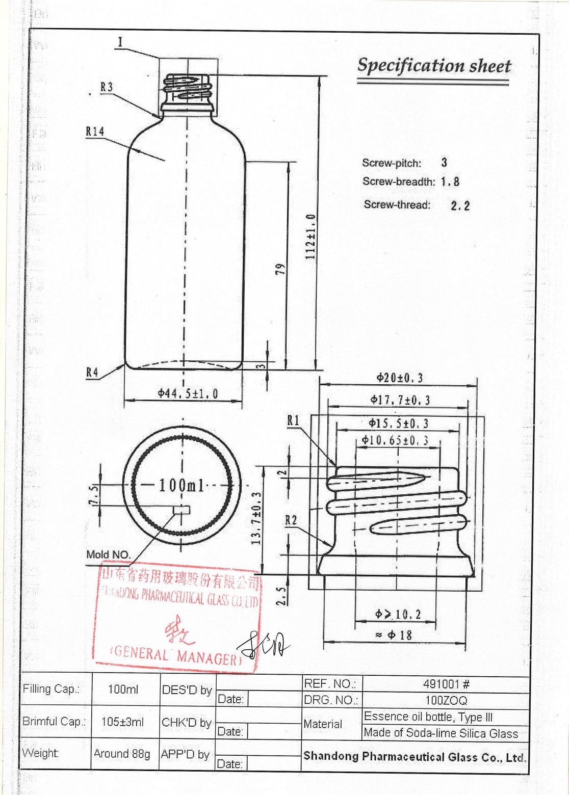 Флакон для капель 100 мл светлое стекло,70 шт, Din18, без крышки