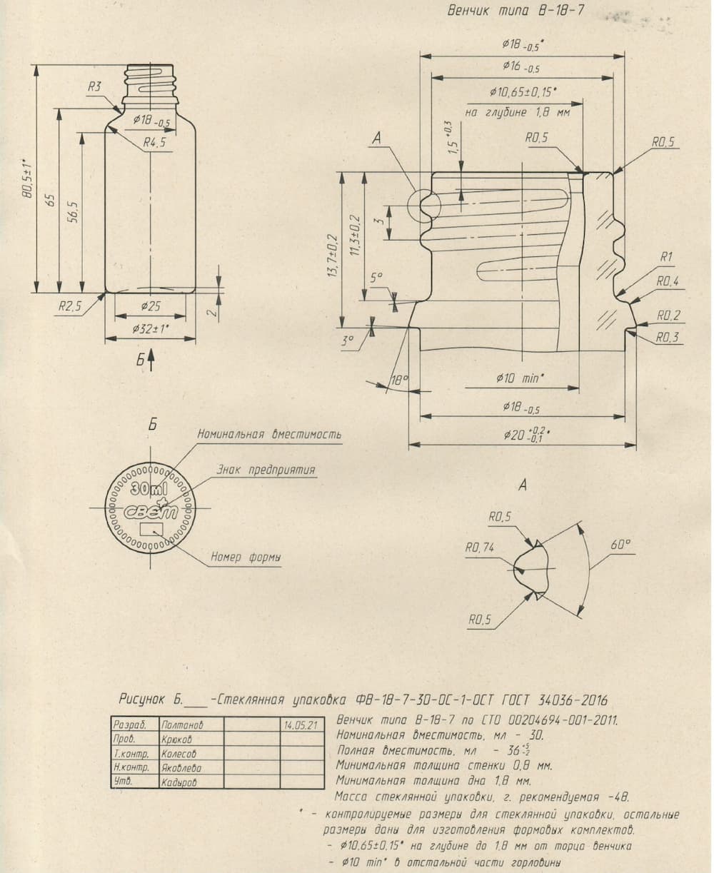 Флакон для капель ФВ-30-18, 30 мл, темное стекло, без крышки, 195 шт/упак. широко используется в российской фармацевтической и химической промышленности. Изготовлен из высококачественного темного стекла марки ОС-1, что обеспечивает его высокую термо- и химическую стойкость. Флакон ФВ производится в соответствии с рядом технических регламентов, в том числе ГОСТ 30288-95 "Тара стеклянная. Общие положения по безопасности, маркировке и ресурсосбережению", ГОСТ 34036-2016 "Упаковка стеклянная из стекломассы для лекарственных средств. Общие технические условия" и ГОСТ 19808-86 "Стекло медицинское. Марки".