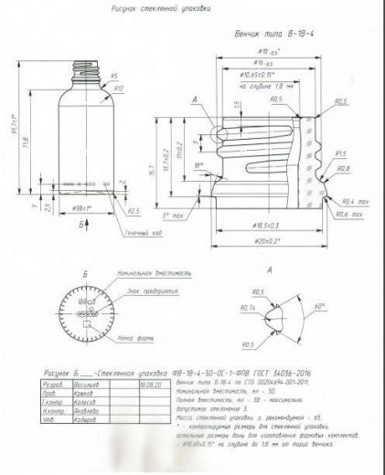 Флакон для капель ФВ-50-18, 50 мл, темное стекло, без крышки, 110 шт/упак. широко используется в российской фармацевтической и химической промышленности. Изготовлен из высококачественного темного стекла марки ОС-1, что обеспечивает его высокую термо- и химическую стойкость. Флакон ФВ производится в соответствии с рядом технических регламентов, в том числе ГОСТ 30288-95 "Тара стеклянная. Общие положения по безопасности, маркировке и ресурсосбережению", ГОСТ 34036-2016 "Упаковка стеклянная из стекломассы для лекарственных средств. Общие технические условия" и ГОСТ 19808-86 "Стекло медицинское. Марки".