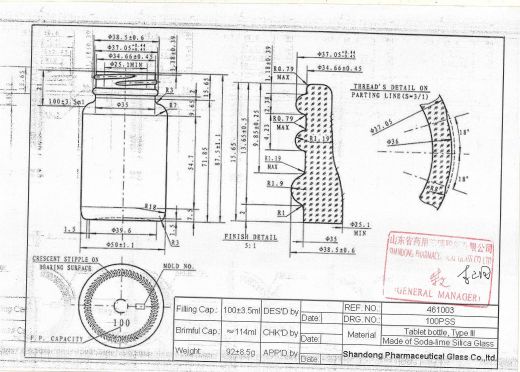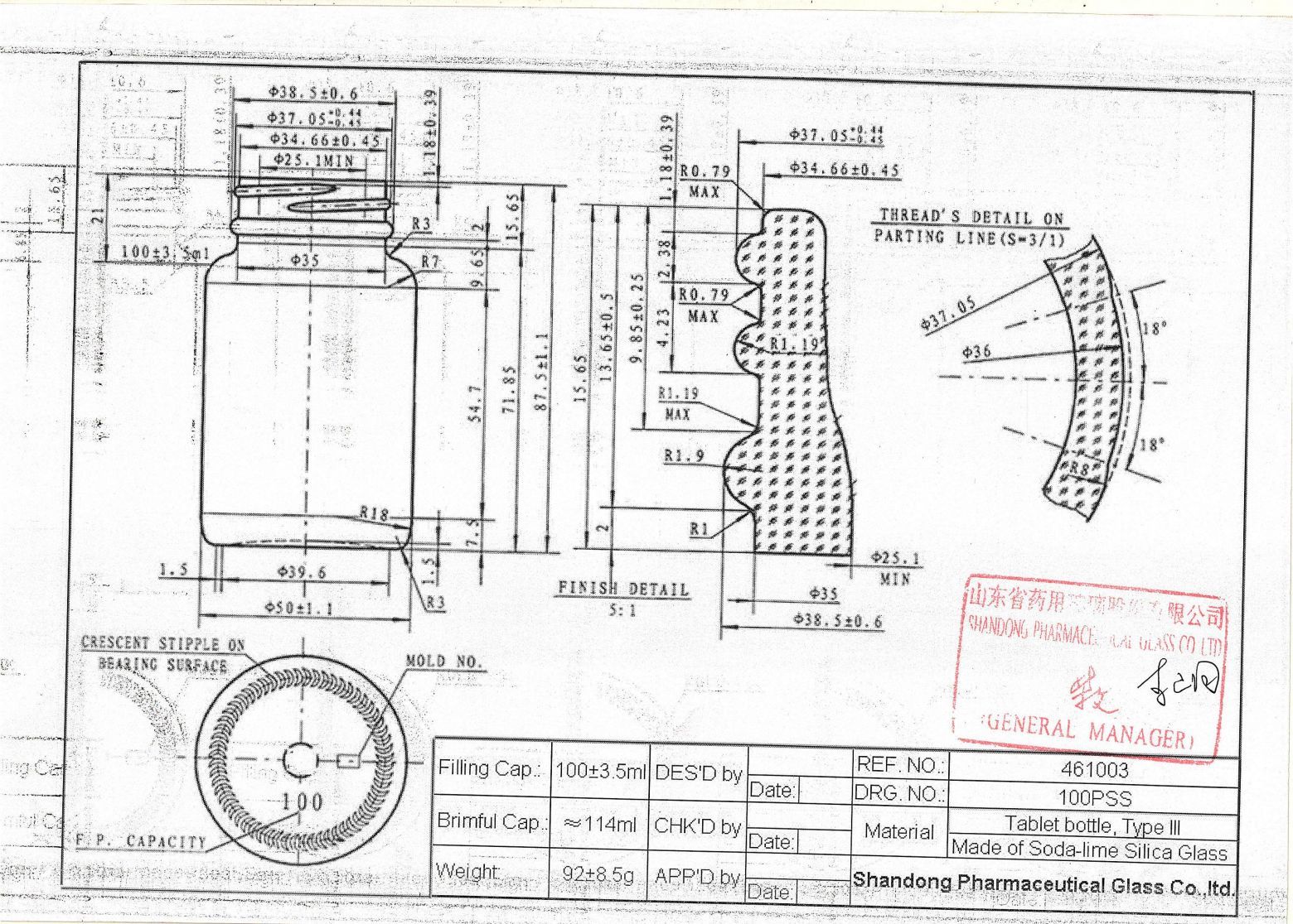 Флакон для таблеток 100 мл, темное стекло, винтовое горло GPI38-400, без крышки, 192 шт/упак предназначена для надежного хранения и дозирования сыпучих и жидких веществ.