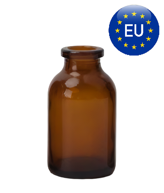 Флакон инъекционный 20 мл, темное стекло, круглый скат горла, гладкое горло G20, без пробки, AT, 17 100 шт/паллет