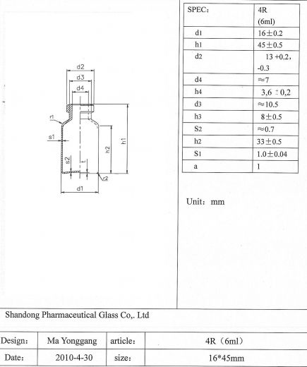 Соответствует ГОСТ 34036-2016 "Упаковка стеклянная из стекломассы для лекарственных средств",