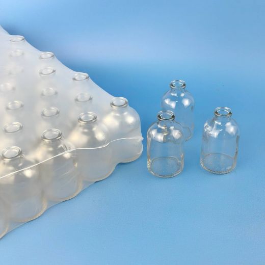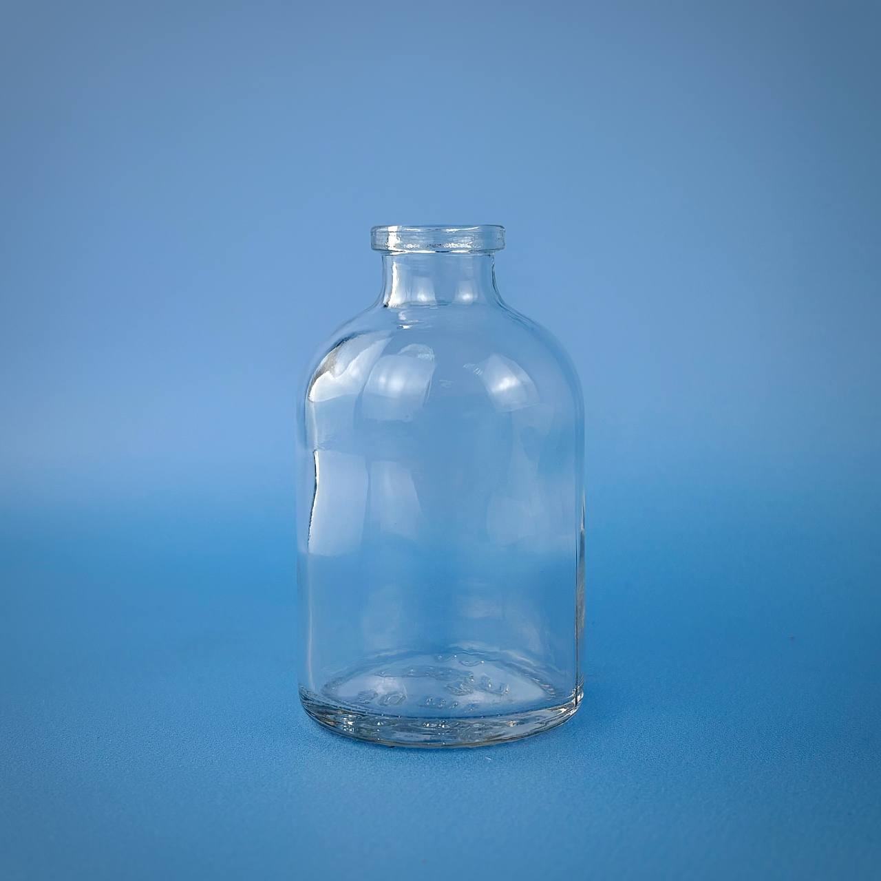 Флакон инъекционный ФП-50-20, 50 мл, светлое стекло, круглый скат горла, гладкое горло, без пробки, 80 шт/упак - прозрачные флаконы для инъекций объемом 100 мл используются для хранения и введения основных антибиотиков. Эти флаконы изготовлены из гидролитического светлого стекла класса 3, отличающегося превосходной химической стойкостью и низкой скоростью водной коррозии, что имеет первостепенное значение для сохранения чистоты и эффективности фармацевтической продукции. По сравнению с темным стеклом, светлое стекло обеспечивает лучшую видимость содержимого, помогая проверять чистоту, наличие твердых частиц и целостность хранящихся лекарств.