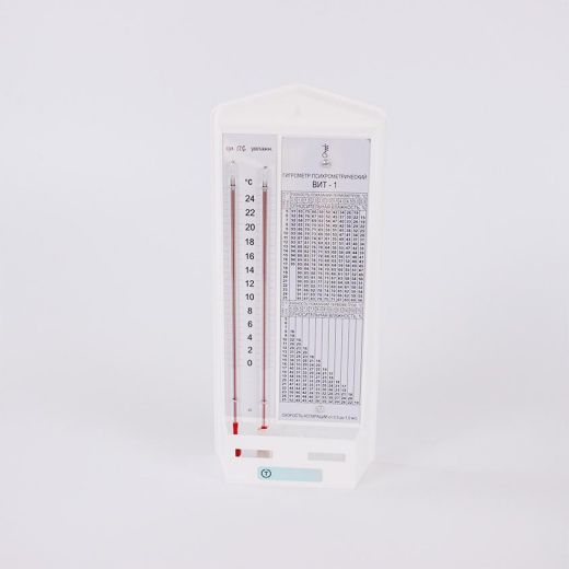 Гигрометр психрометрический ВИТ - позволяет получать максимально точные результаты измерения, погрешность термометров с учетом введения поправок составляет +- 0,2 градуса С.