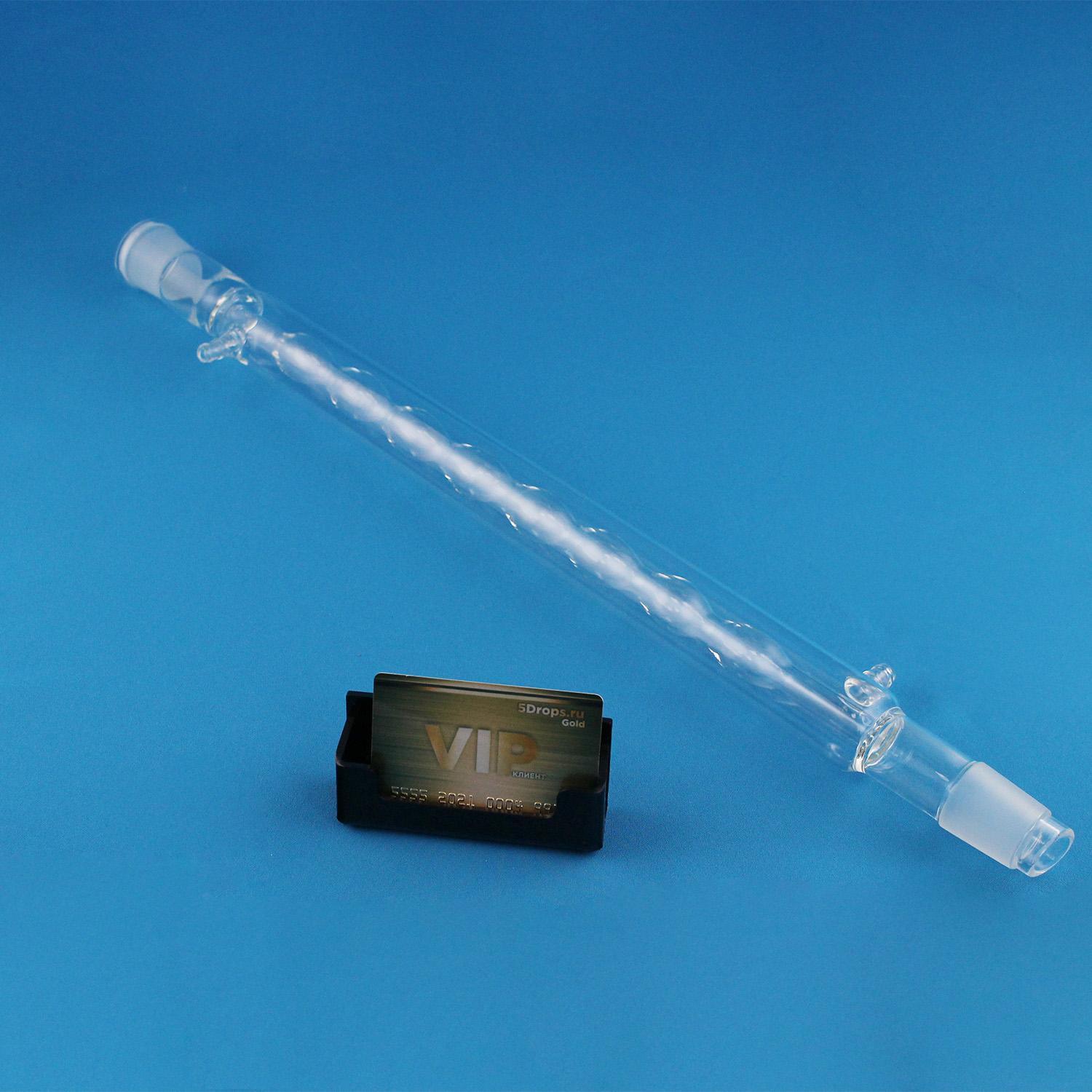 • Выполнен из лабораторного стекла, теплоемкость которого намного выше чем у любого металла. за счет этого при малых размерах эффективнее любого металлического холодильника.• Маленькие шлифы на входе и выходе идеально и герметично подходят под шланг диаметром 10 мм.