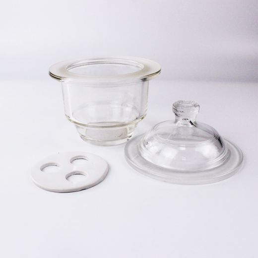 Благодаря специальным фарфоровым вкладышам внутрь посуды можно поставить тигель кварцевый, выпарные чашки, чашки Петри, бюксы и другие емкости. На дно эксикатора может быть помещен силикагель или другое гигроскопичное вещество для осушения, которое не входит в комплект поставки.