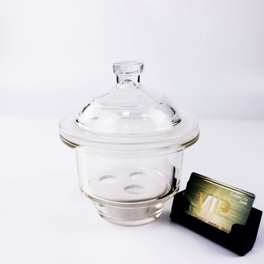 Эксикатор 5drops 2-120, 120 мм, без крана, светлое стекло — предназначен для медленного высушивания и хранения гигроскопических веществ. Разработан для создания изолированной среды в объеме сосуда. В котором поддерживается близкая к нулю влажность воздуха. Эксикатор состоит из стеклянной емкости с крышкой, а также имеет решётчатый фарфоровый поддон, на который устанавливаются тигли или бюксы. Плоскость соединения с крышкой для достижения герметичности может быть смазана вакуумной смазкой.