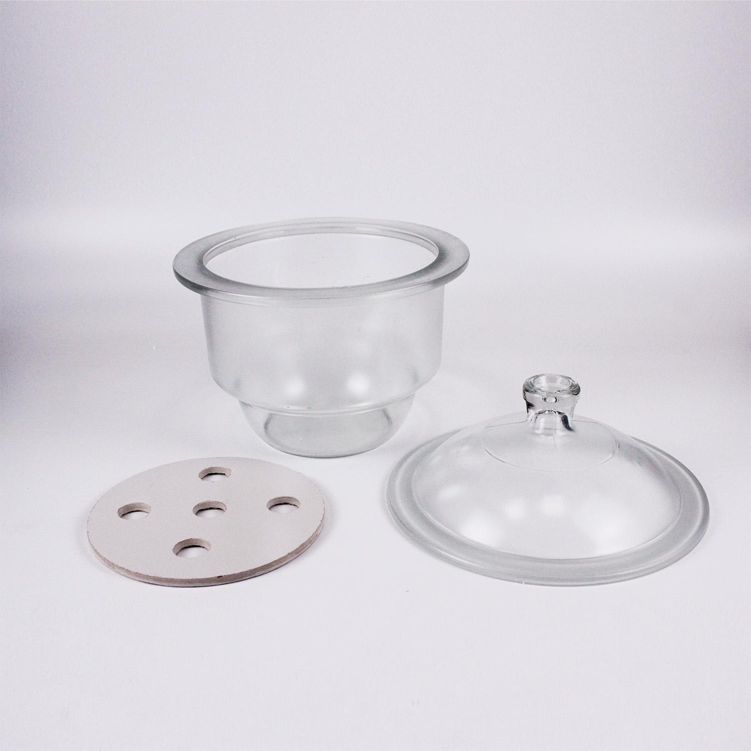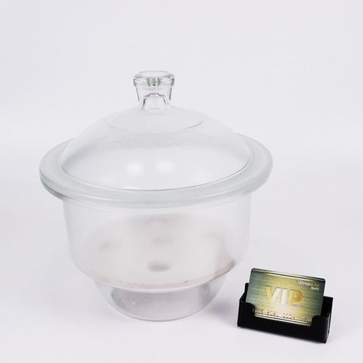 Эксикатор 5drops, светлое стекло, без крана, с керамической вставкой, 2-210 мм — предназначен для медленного высушивания и хранения гигроскопических веществ. Разработан для создания изолированной среды в объеме сосуда. В котором поддерживается близкая к нулю влажность воздуха. Эксикатор состоит из стеклянной емкости с крышкой, а также имеет решётчатый фарфоровый поддон, на который устанавливаются тигли или бюксы. Плоскость соединения с крышкой для достижения герметичности может быть смазана вакуумной смазкой.