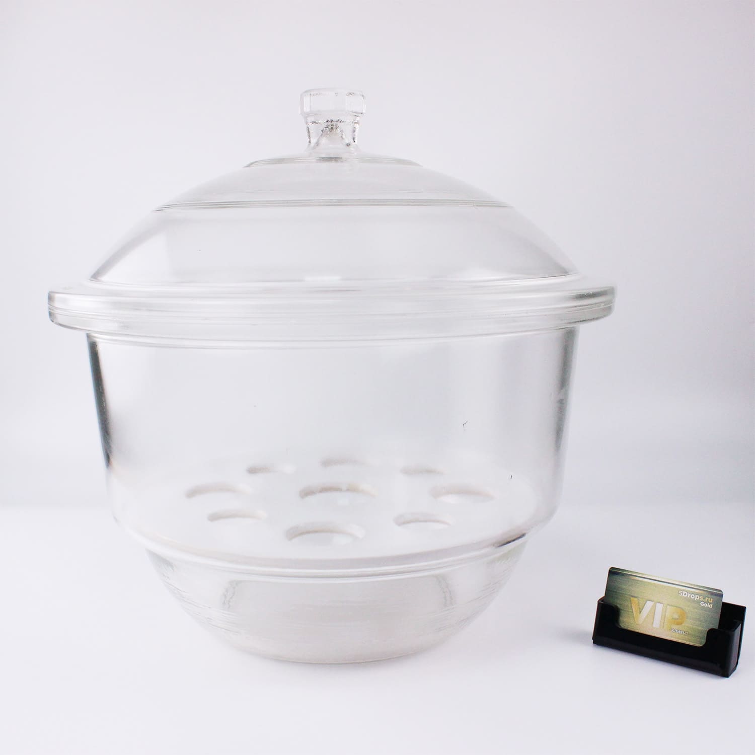 Эксикатор 5drops 2-350, 350 мм, без крана, светлое стекло — предназначен для медленного высушивания и хранения гигроскопических веществ. Разработан для создания изолированной среды в объеме сосуда. В котором поддерживается близкая к нулю влажность воздуха. Эксикатор состоит из стеклянной емкости с крышкой, а также имеет решётчатый фарфоровый поддон, на который устанавливаются тигли или бюксы. Плоскость соединения с крышкой для достижения герметичности может быть смазана вакуумной смазкой.