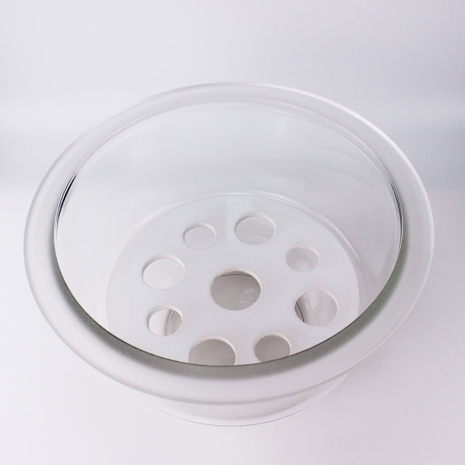 Благодаря специальным фарфоровым вкладышам внутрь посуды можно поставить тигель кварцевый, выпарные чашки, чашки Петри, бюксы и другие емкости. На дно эксикатора может быть помещен силикагель или другое гигроскопичное вещество для осушения, которое не входит в комплект поставки.