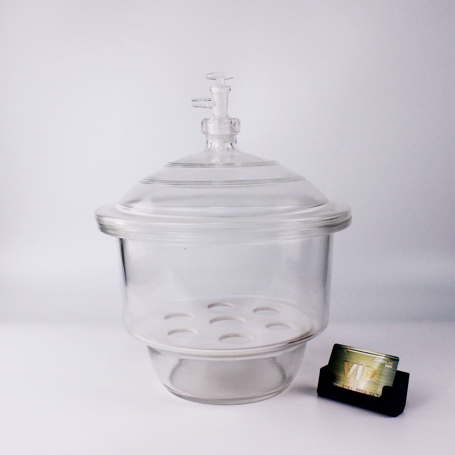 Улучшенное удаление влаги: Наличие крана позволяет создать вакуум, обеспечивающий более эффективное удаление влаги по сравнению со стандартными эксикаторами.