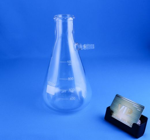 Колба Бунзена 5drops-1000, Boro 3.3, на 1000 мл, без шлифа - предназначена для фильтрования под пониженным давлением, с применением вакуумного насоса. В горловину вставляют воронку Бюхнера или Шотта. Благодаря шлифованной горловине соблюдается герметичное соединение. К тубусу подсоединяют трубку. Воронку примерно наполовину заполняют фильтруемым веществом. Насос создает в колбе разрежение, и жидкость из воронки поступает в сосуд.