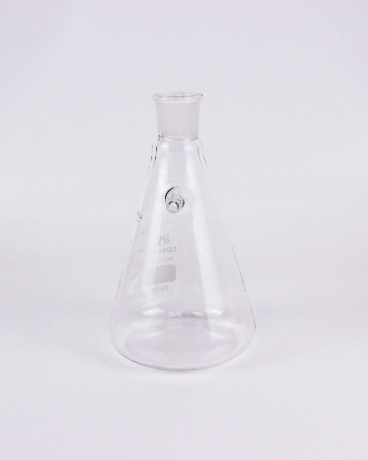 Колба Бунзена 5drops 2-1000-29/32 со шлифом, 1000 мл. Колба Бунзена 5drops 2-1000-29/32 со шлифом, 1000 мл - предназначена для фильтрования под пониженным давлением, с применением вакуумного насоса. В горловину вставляют воронку Бюхнера или Шотта. Благодаря шлифованной горловине соблюдается герметичное соединение. К тубусу подсоединяют трубку. Воронку примерно наполовину заполняют фильтруемым веществом. Насос создает в колбе разрежение, и жидкость из воронки поступает в сосуд. Этот вид колб был изобретен для вакуумной фильтрации. Данный процесс может преследовать различные цели: Очищение, мойка осадка (промывка его различными жидкостями), получение фильтрата (фильтрования реактивов). Также колба Бунзена может выступать в качестве предохранительной емкости или ловушки для газов. Качество фильтрации зависит от типа фильтровальной воронки – обычно берут воронку Бюхнера, внутрь вкладывают фильтры нужной плотности. Также применяют фарфоровые и стеклянные воронки с пористой пластиной. Для качественного соединения воронки и колбы применяют резиновую прокладку, различные зажимы или посуду со шлифами. Используют бумажные, тканевые, флизелиновые фильтры или специальные, для ультрафильтрации. Лучшим вариантом будут обеззоленные бумажные фильтры различной плотности. Чтобы бумага лучше присосалась, не было потерь осадка или фильтра, его вкладывают в фарфоровую, или стеклянную воронку, поливают дистиллированной водой, стараются выдавить пузырьки воздуха и плотно придавить по краям к стенкам воронки (диаметр фильтра подбирают на несколько миллиметров больше, чем диаметр лейки) Колба Бунзена со шлифом также может быть использована в качестве одного из звеньев стеклянной сборной дистилляционной цепи (при очистки спиртовых паров). В неё из перегонного куба (колбы) направляют спиртовые пары, а на сам куб (колбу) устанавливают елочный дефлегматор или обратный холодильник Димрота. В итоге колба Бунзена становится принимающей емкостью, в которой скапливаются очищенные дефлегматором легкокипящие спиртовые пары (сивушные масла).