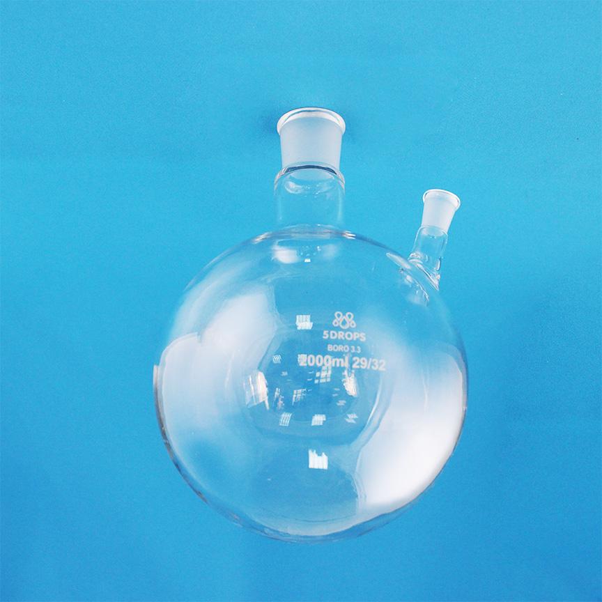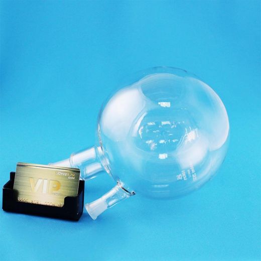 Колба круглодонная двугорлая 5drops КГУ-2-1-2000, на 2000 мл, шлифы 29/32-14/23 – это незаменимая лабораторная посуда для дистилляции и других химических реакций в любой лаборатории, эта колба с одним коротким вертикальным и одним косым горлышком предназначена для одновременного проведения многоступенчатых процессов, что способствует эффективности и точности ваших научных исследований.