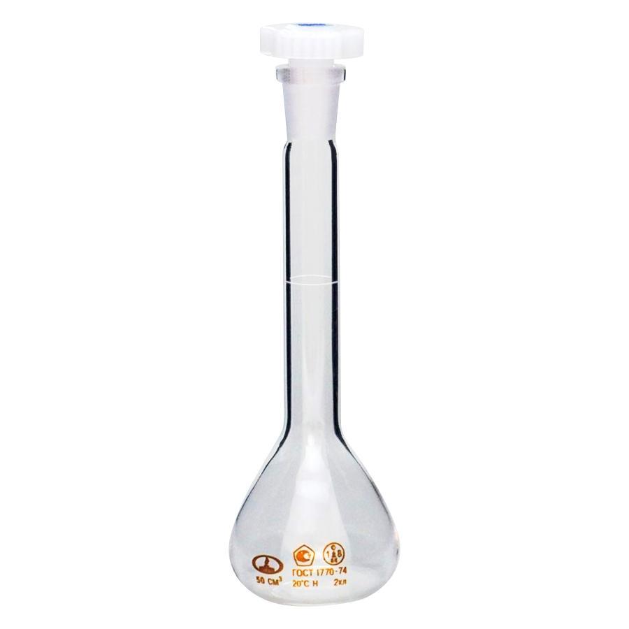 Колба мерная 2а-50-2, 50 мл, 2 класс точности, пластиковая пробка, без шлифа, 12 шт/упак. предназначена для точного измерения и приготовления объемов жидкостей в лабораторных условиях. Она оснащена меткой, определяющей объем, что позволяет получать высокую точность измерений, необходимую для аналитических работ. Мерная колба изготовлена из стекла ХС-1 в соответствии ГОСТ 21400-75 обозначающий химически стойкое стекло первого класса.