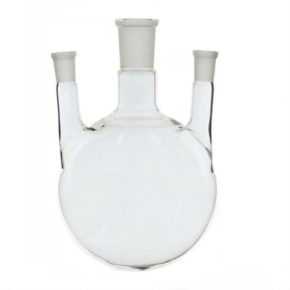 Выравнивание давления: Боковые горловины могут быть соединены с воронкой для выравнивания давления или воздухоотводчиком, который помогает сбалансировать давление внутри колбы с атмосферным давлением, что очень важно для некоторых реакций под рефлюксом или при использовании летучих растворителей.