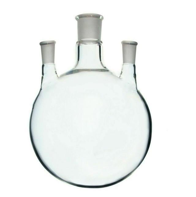 Выравнивание давления: Боковые горловины могут быть соединены с воронкой для выравнивания давления или воздухоотводчиком, который помогает сбалансировать давление внутри колбы с атмосферным давлением, что очень важно для некоторых реакций под рефлюксом или при использовании летучих растворителей.