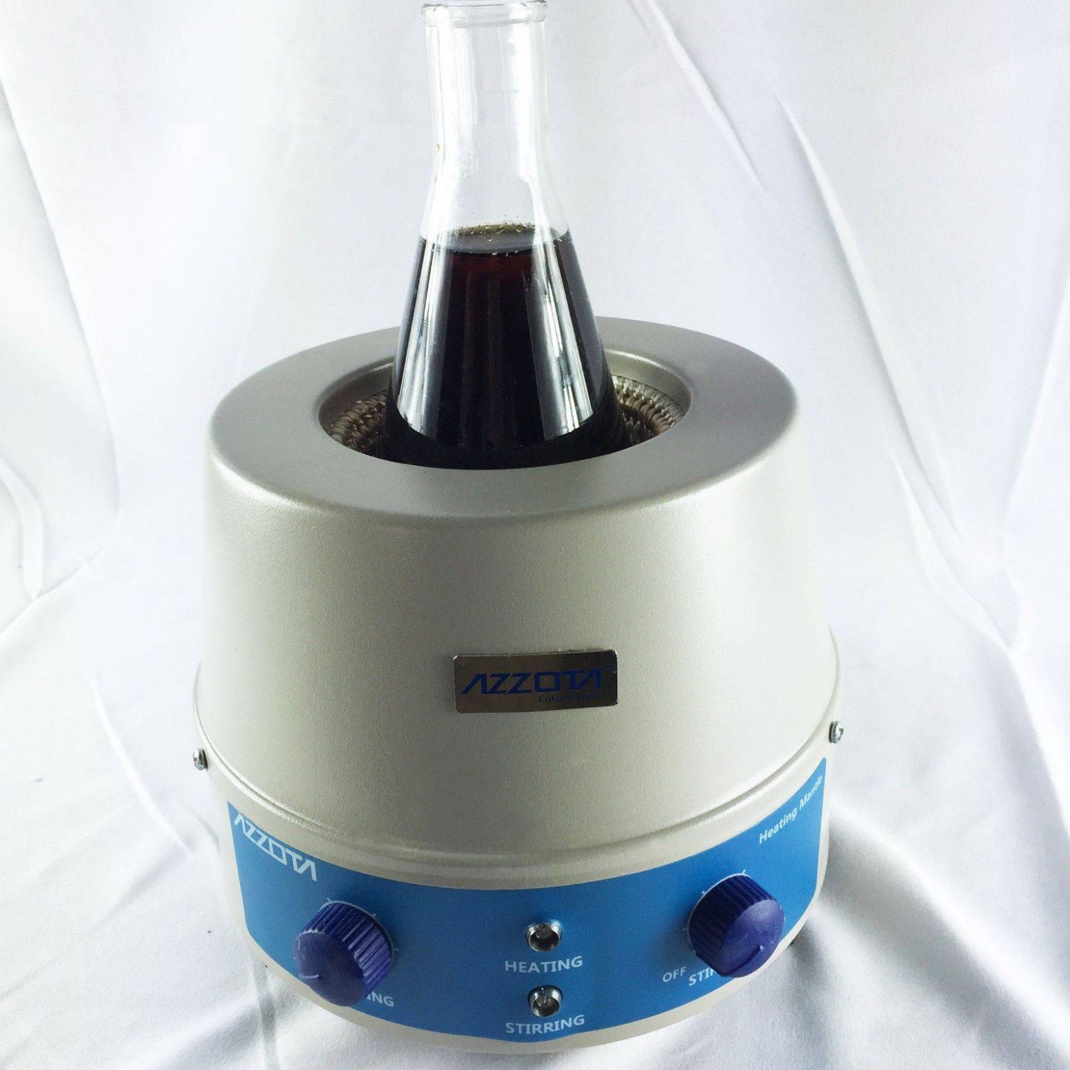- Нагрев идет от термоэлемента (нихром в стеклоткани) имеющего форму полусферы и достаточно плотно прилегающего к колбе. Форма нагревающего элемента обеспечивает большую нагревающую площадь, быстрый нагрев, отсутствие пламени, высокую плавность нагрева, бесступенчатость , энергосбережение и высокую эффективность.
