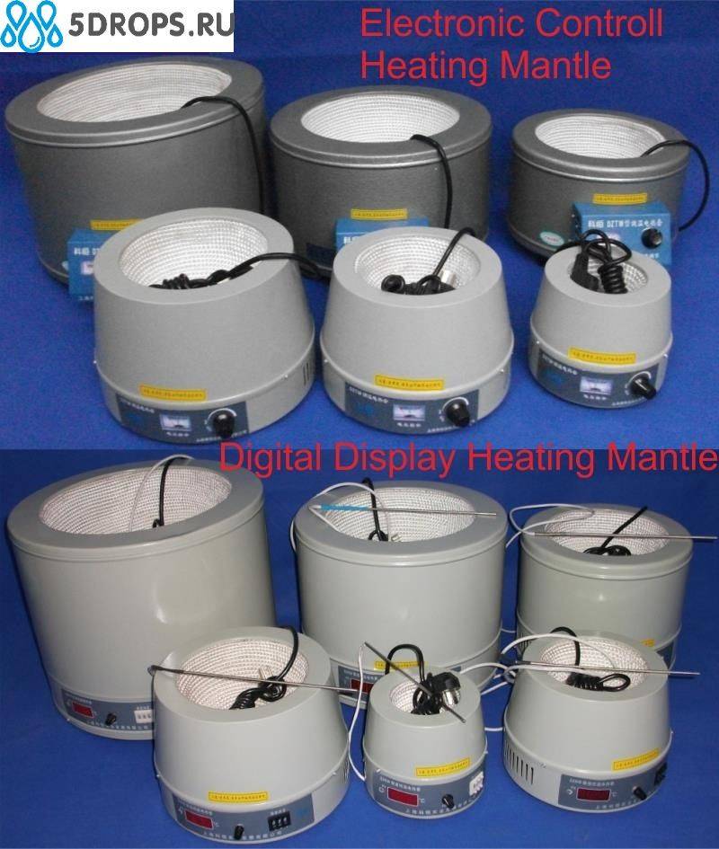 - Нагрев идет от термоэлемента (нихром в стеклоткани) имеющего форму полусферы и достаточно плотно прилегающего к колбе. Форма нагревающего элемента обеспечивает большую нагревающую площадь, быстрый нагрев, отсутствие пламени, высокую плавность нагрева, бесступенчатость , энергосбережение и высокую эффективность.
