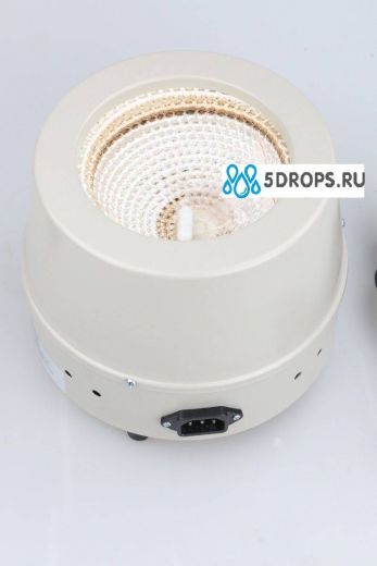 - Нагрев идет от термоэлемента (нихром в стеклоткани) имеющего форму полусферы и достаточно плотно прилегающего к колбе. Форма нагревающего элемента обеспечивает большую нагревающую площадь, быстрый нагрев, отсутствие пламени, высокую плавность нагрева, бесступенчатость , энергосбережение и высокую эффективность.