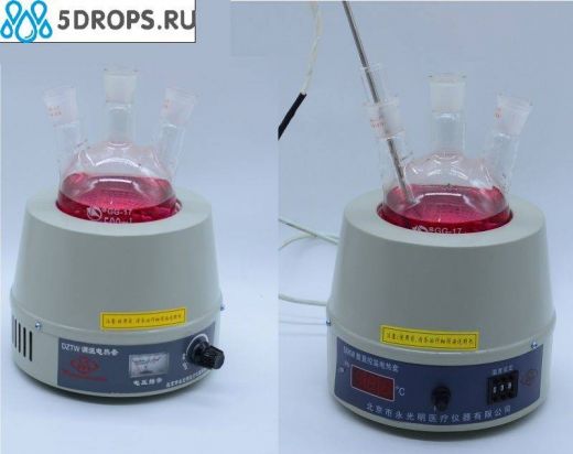 Нагрев жидкостей в круглодонных термостойких колбах объемом 5 л в диапазоне температур от комн. t°С до 380°С.